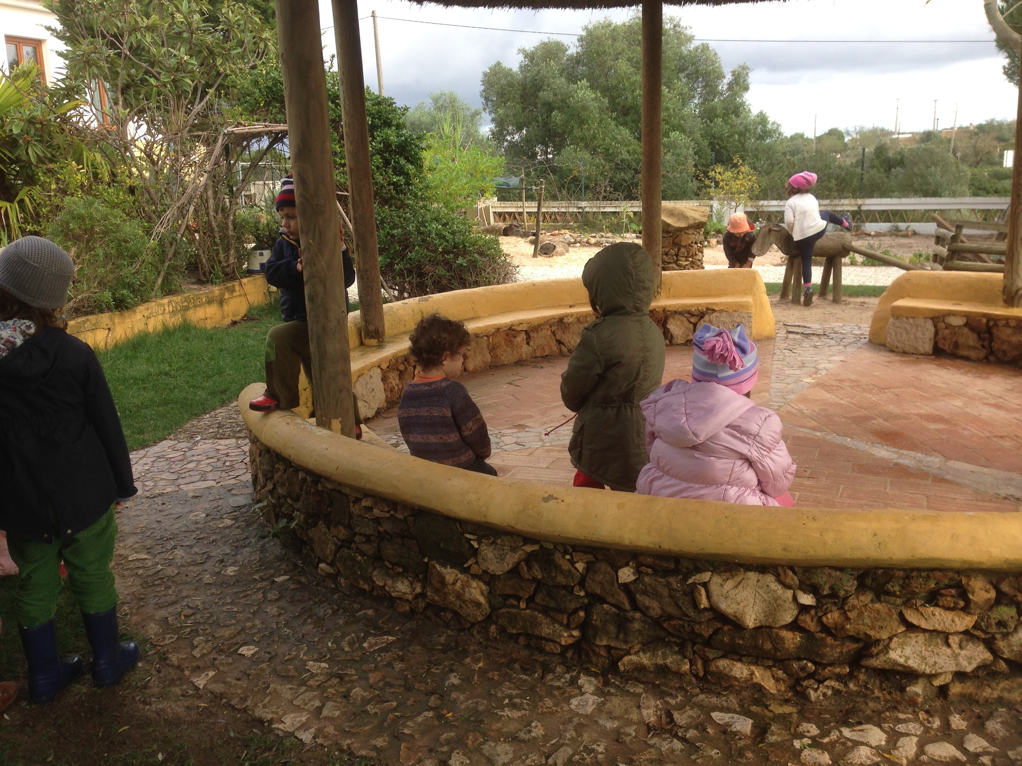 We visited the Waldorf School in Monte Judeu, near Lagos. It is set in an old primary school so without the bars and with lots of fig trees to climb and plants. Everything is made of wood from tree houses to rocking horses. Inside there are cosy corners with wooden toys, cushions and curtains, soft and inviting.